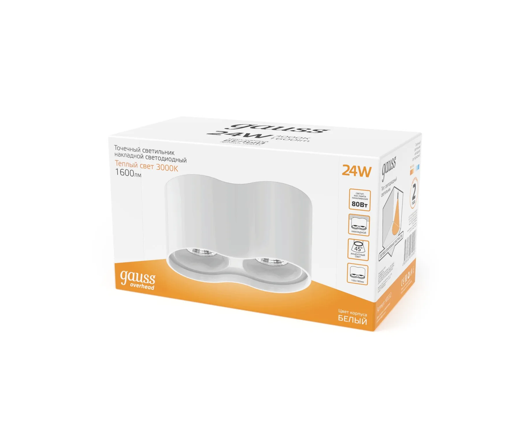 Светильник Gauss Overhead накладной цилиндр 24W 1600lm 3000K 170-240V IP20 180*100мм белый LED 1/10 Артикул: HD032